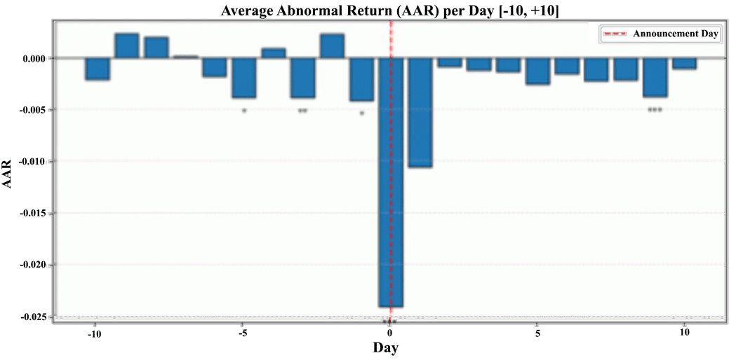 The variations in prices 10 days before the share placement and 10 days after were studied. It was observed that abnormal returns, i.e., daily differences between the variation in the share price that will be subject to an ABB and the index, were random before the ABB, with as many days of negative returns as days of positive returns. However, in the 10 days following the ABB, they became negative 10 days out of 10.