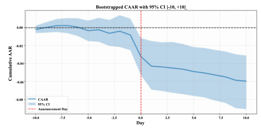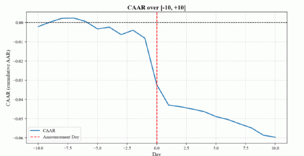 In other words, the decline in prices induced by the ABB investment is not just temporary after the share placement, but extends over several days, causing the cumulative loss to grow and reach an average of 6% 10 days after the ABB: