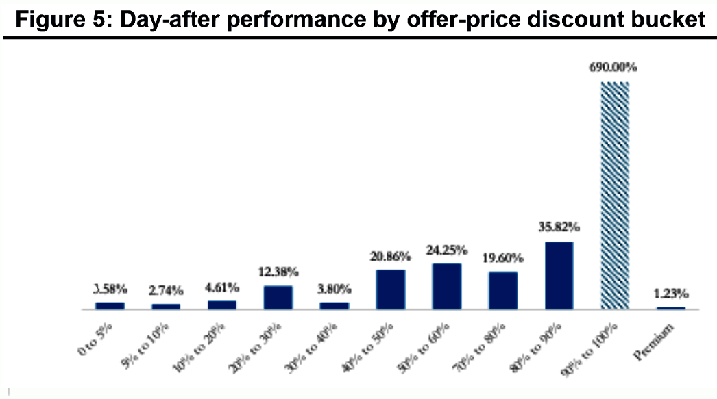 The study by A. Lombardo and D. Masiello shows that hedge funds always come out on top in this game, as they did with ID Logistics. Regardless of the discount granted in the ABB, the first price quoted after the placement is above the placement price (€375 versus €360 in ID Logistics example):